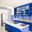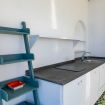 Our kitchen includes a stove, fridge/freezer, coffee maker, oven, microwave, a comprehensive selection of cooking pots and pans, and ceramic wares. Thoughtfully designed storage cabinets and detailed floor and wall concepts.
